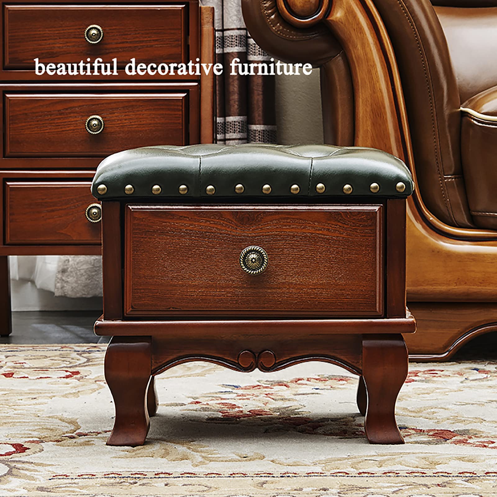 Massivholz-Aufbewahrungs-Ottomane, Fußhocker mit Schublade, kleine Fußstütze, Würfel-Ottomane, Leder-Ottomane mit Stauraum, Vintage-Ottomane für Wohnzimmer, Schlafzimmer, Eingangsbereich-D 3